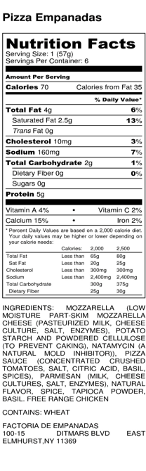 Who doesn't like Pizza? This empanada is filled with mozzarella, parmesan, and pizza sauce with Italian spices on our signature Flaky Dough.